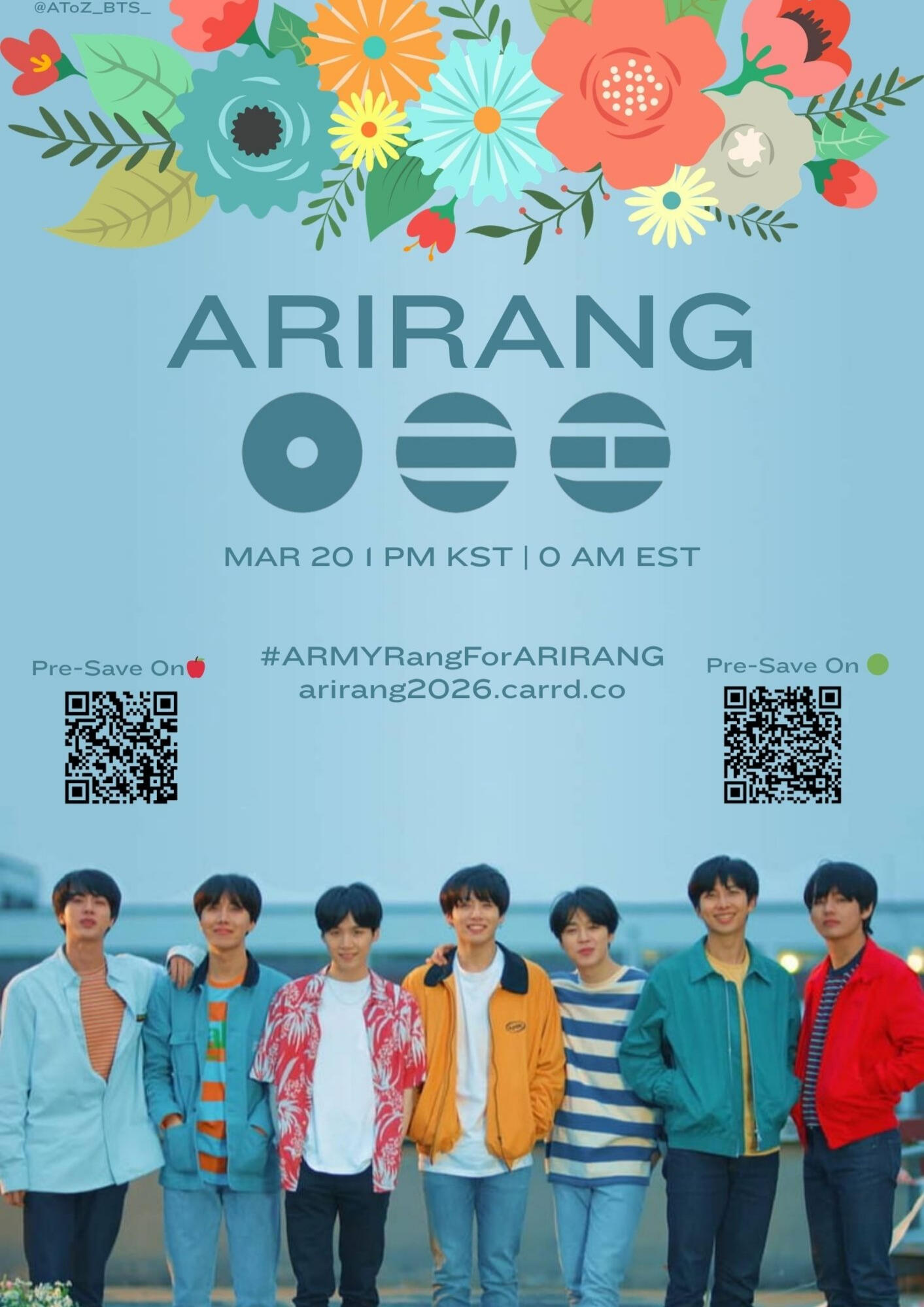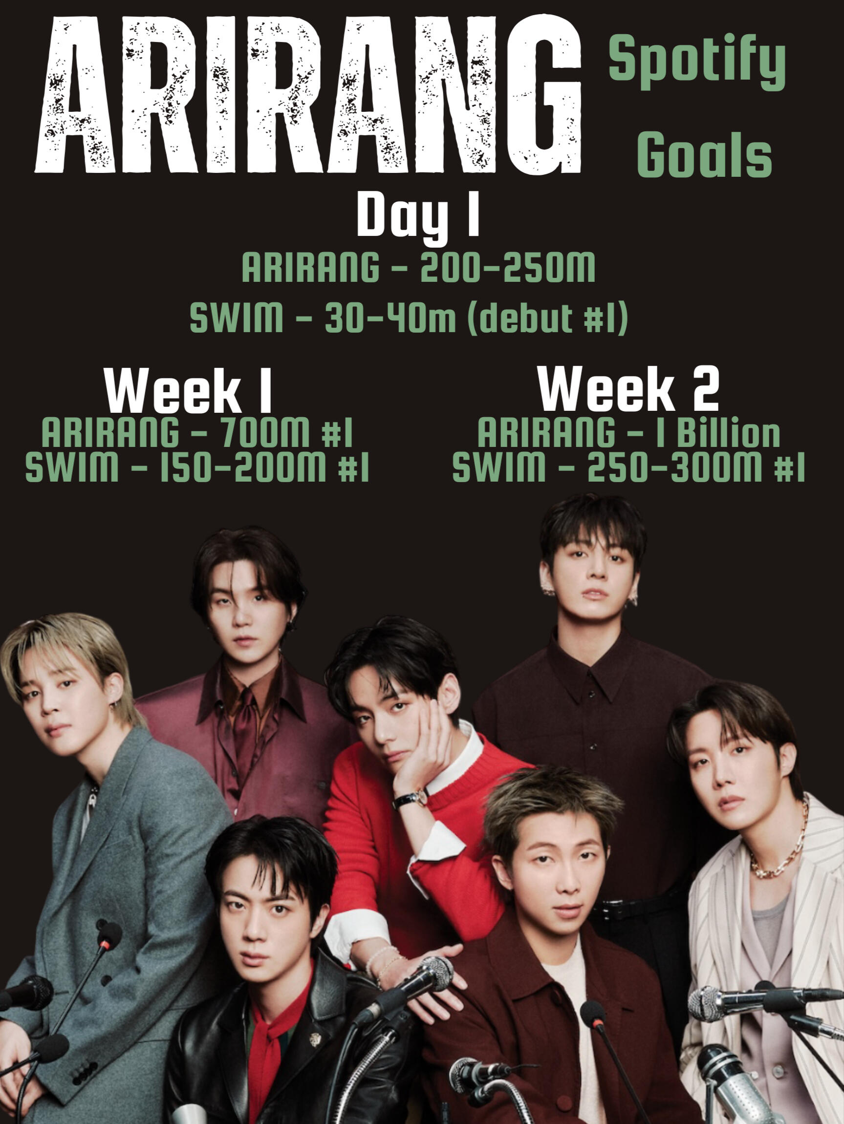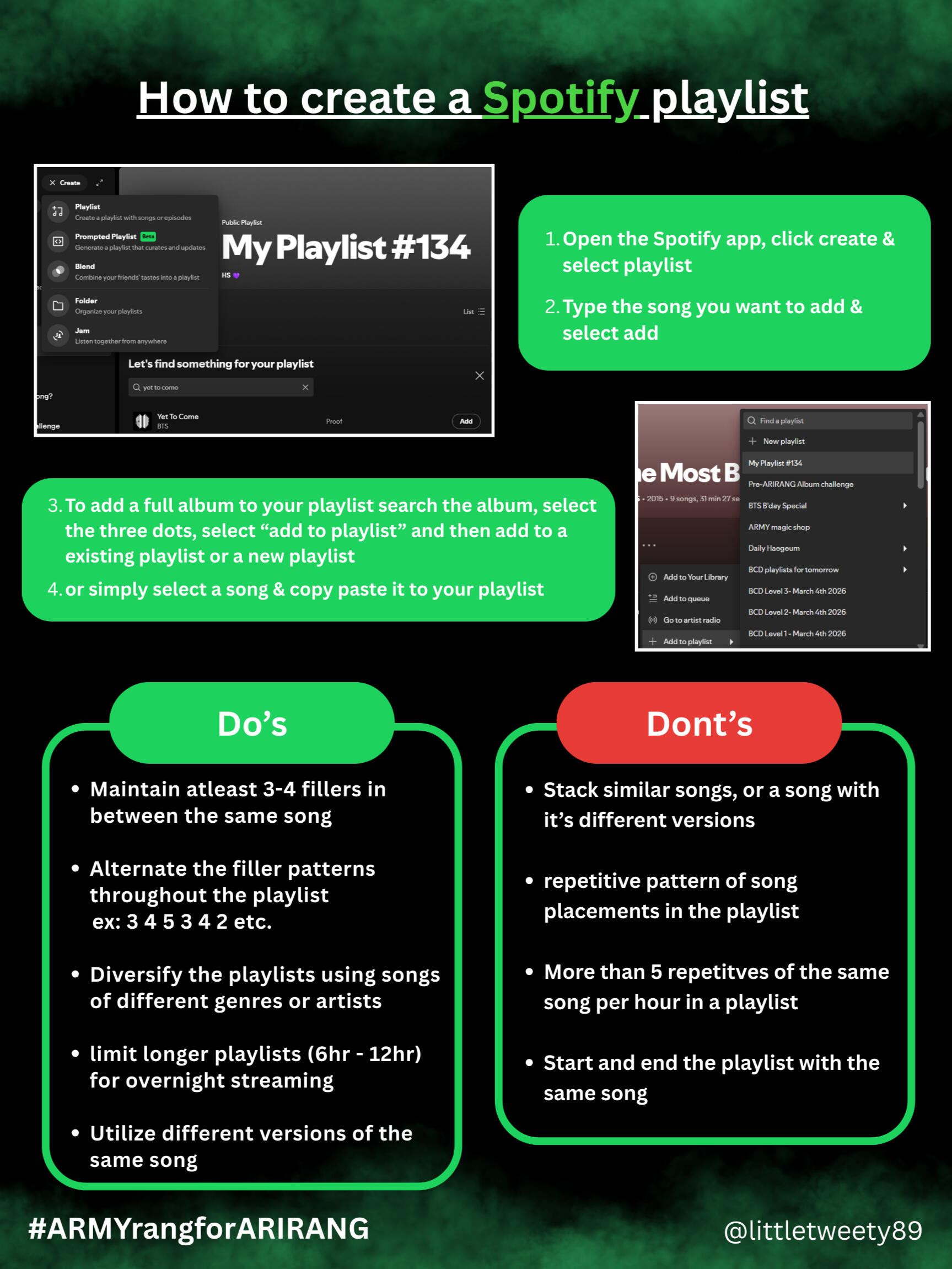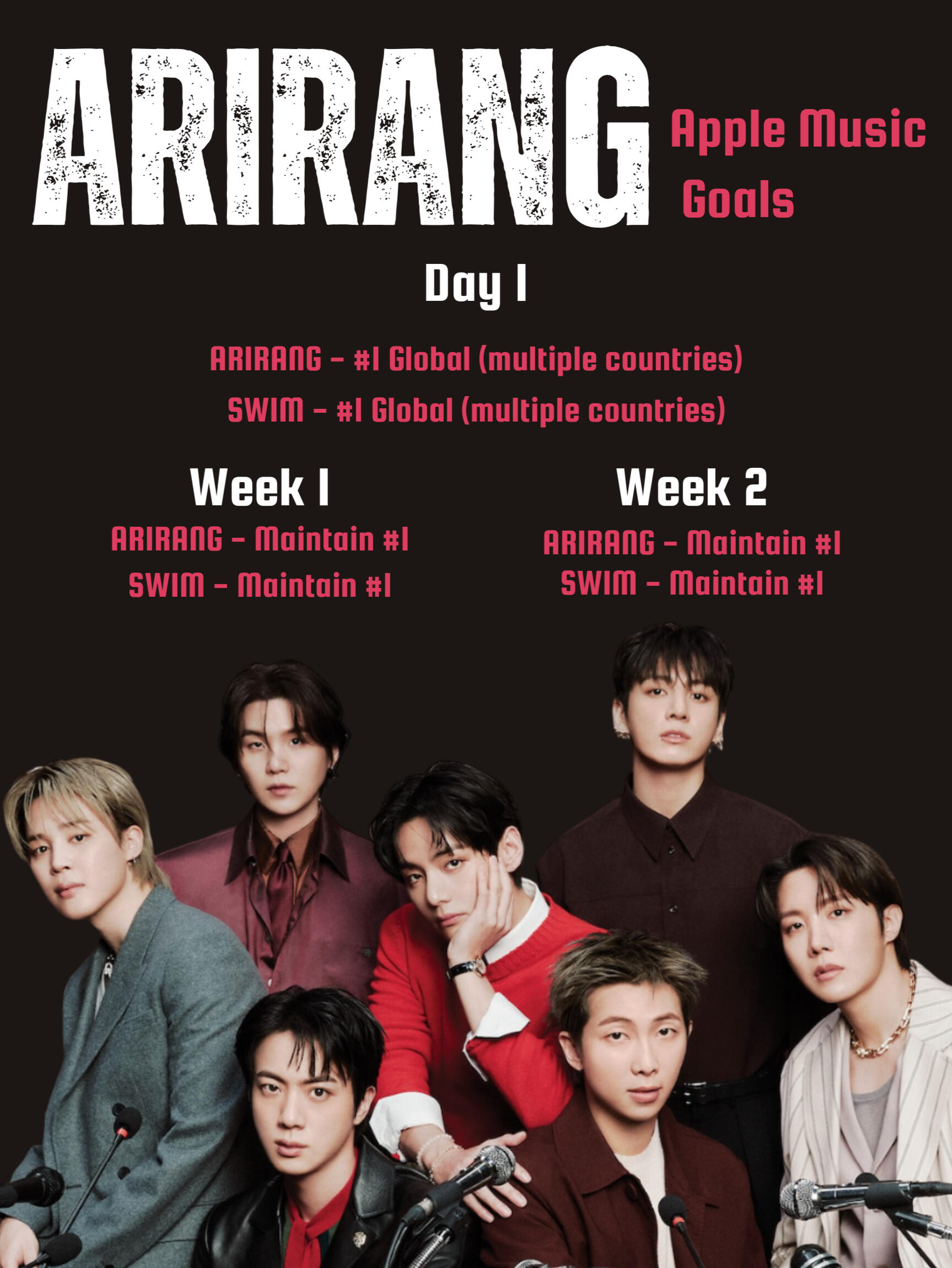 ARMY, Rule no. 1 is playing ARIRANG from top to bottom as many times as you wish in a day, without looping. Use the following guide to check your playlists and keep them on track.
