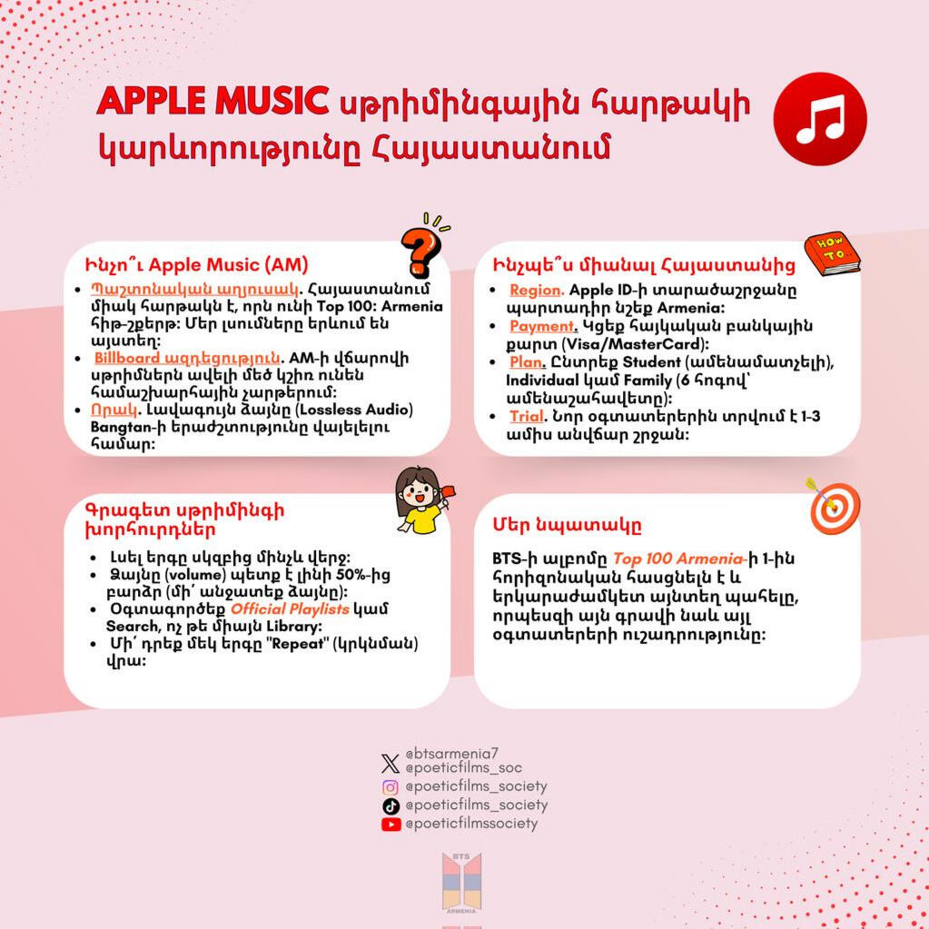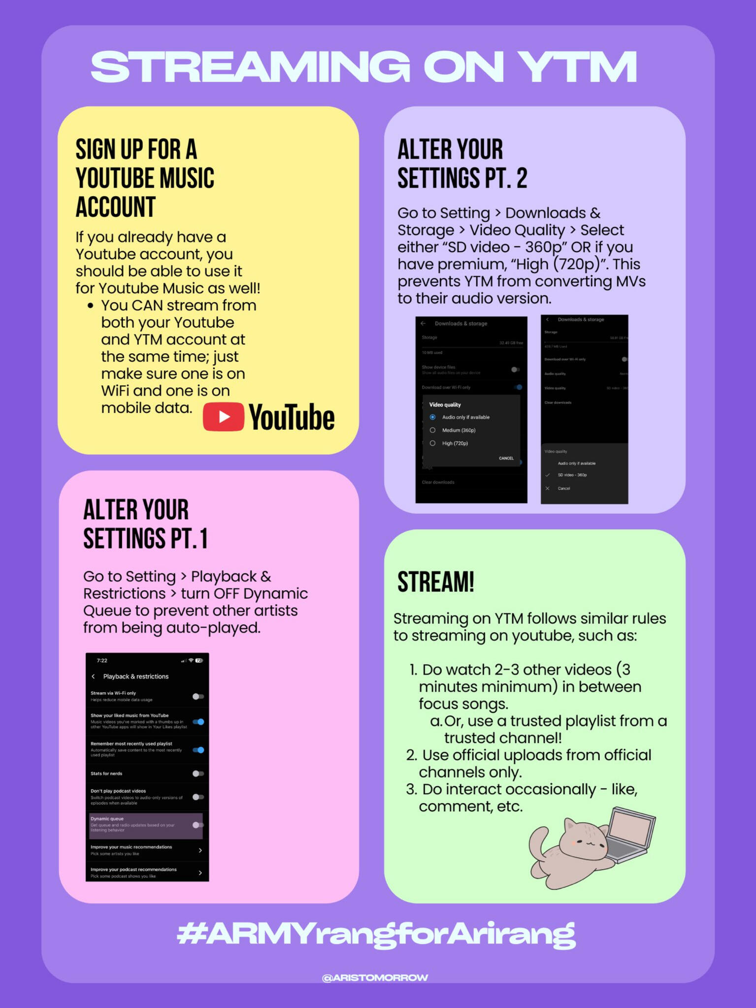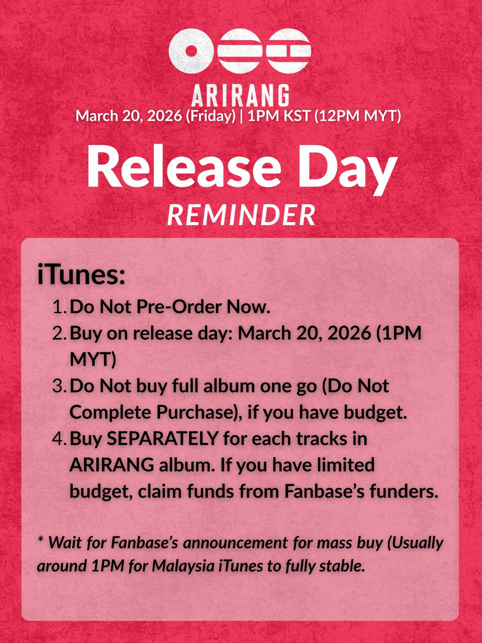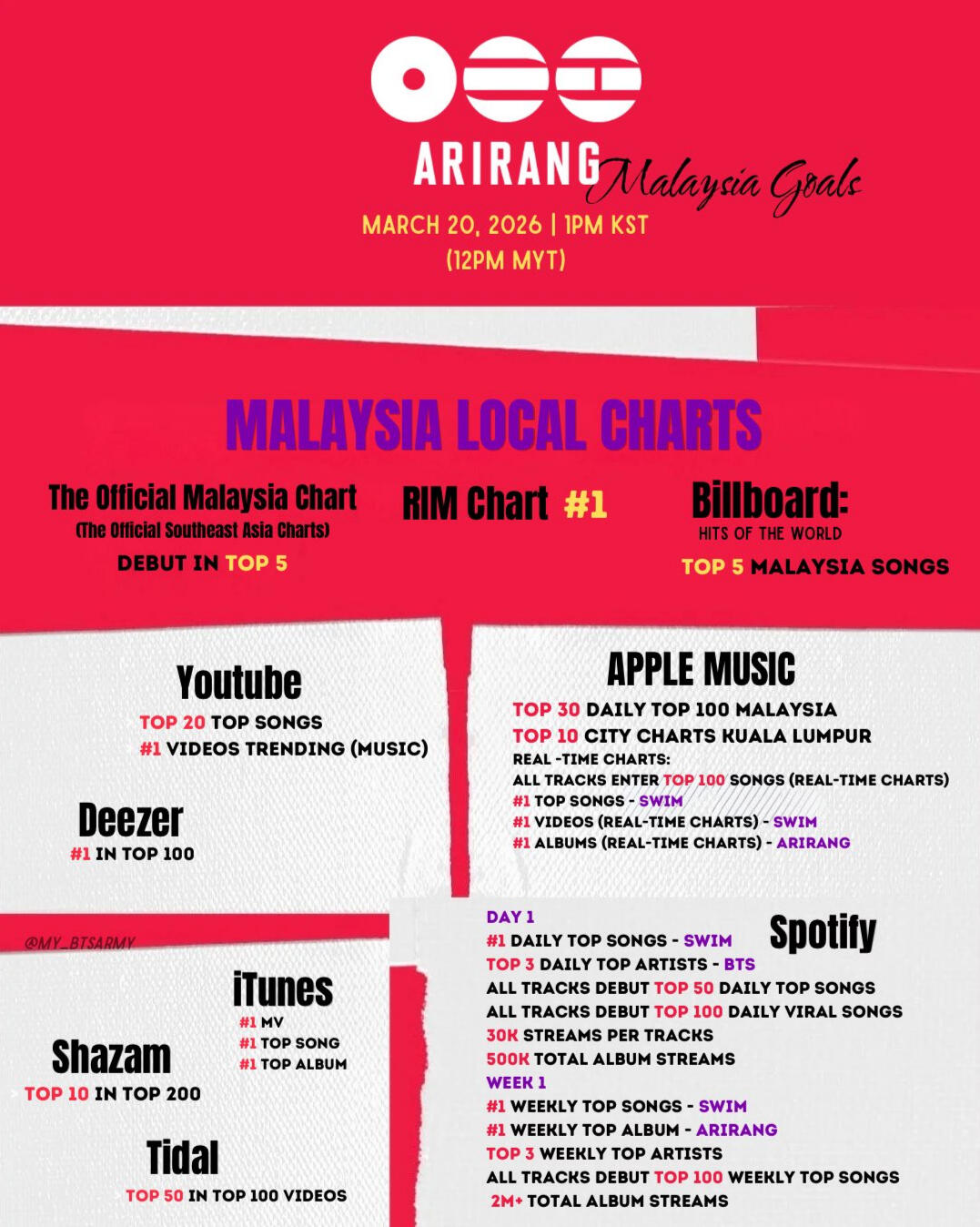 ARMY, Rule no. 1 is playing ARIRANG from top to bottom as many times as you wish in a day, without looping. Use the following guide to check your playlists and keep them on track.