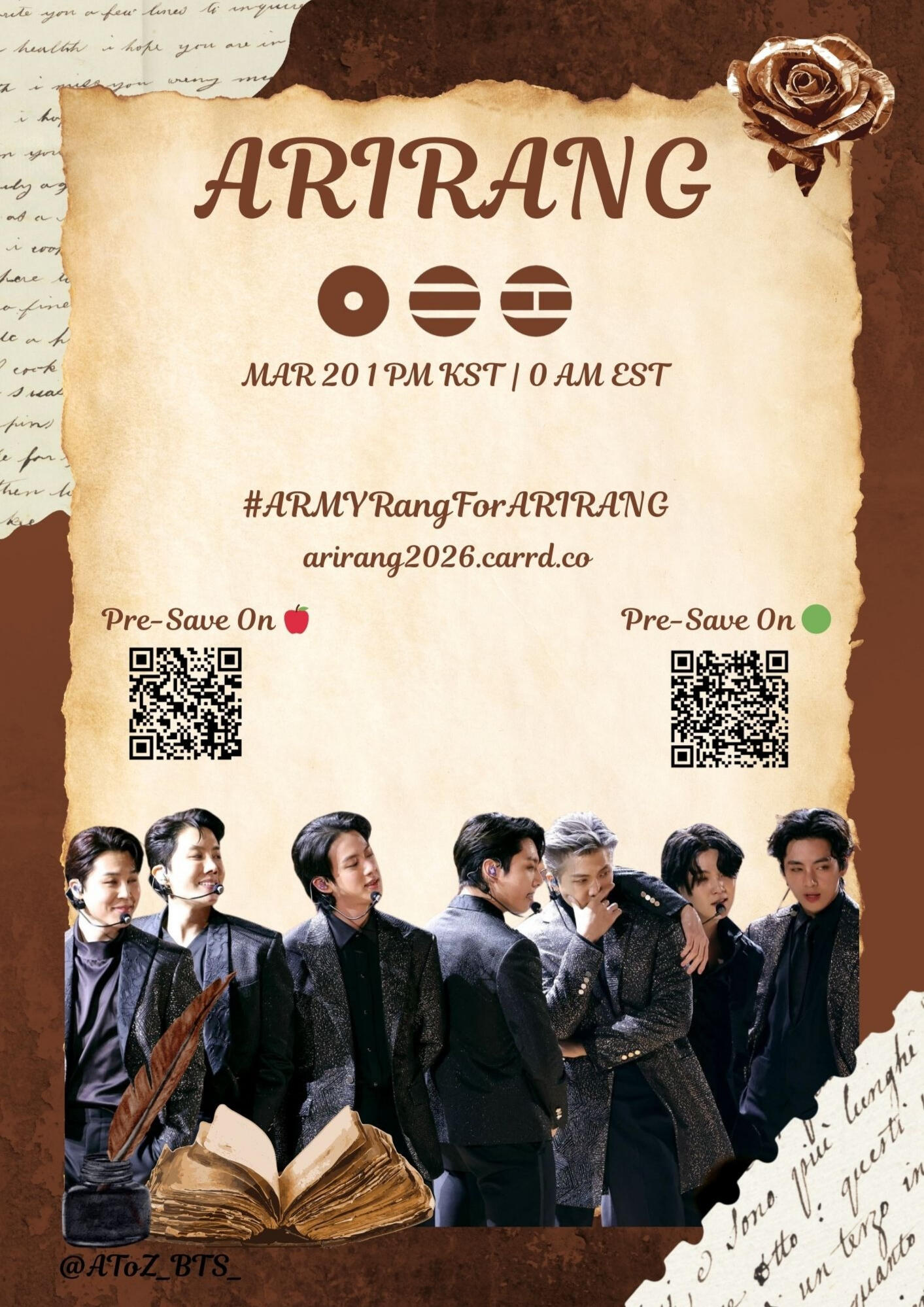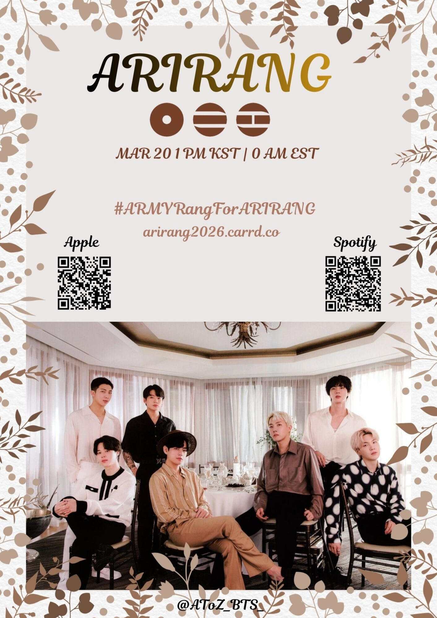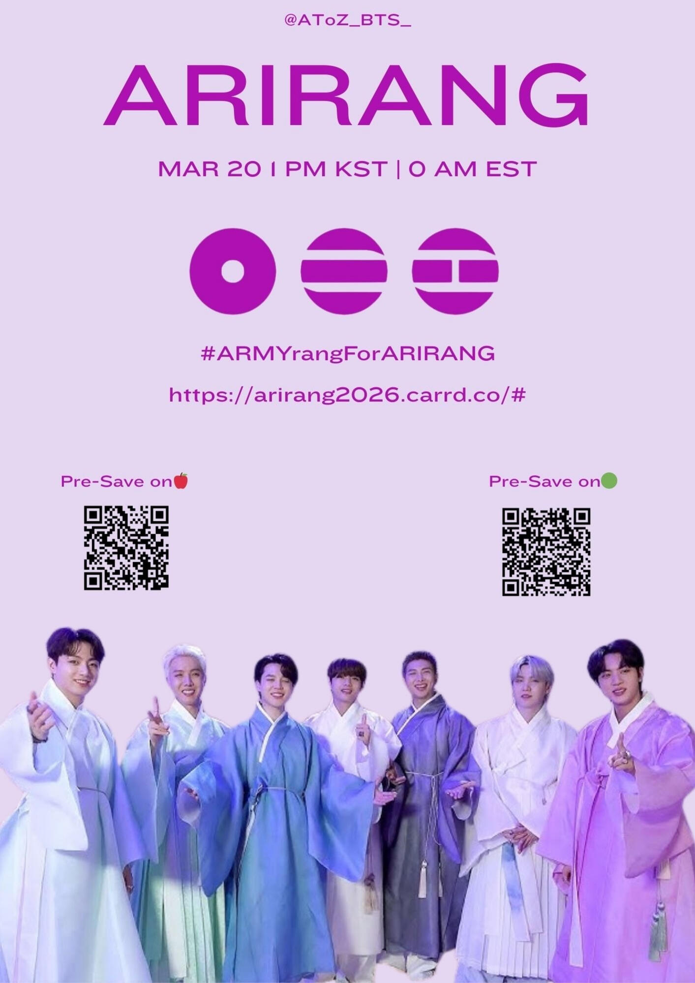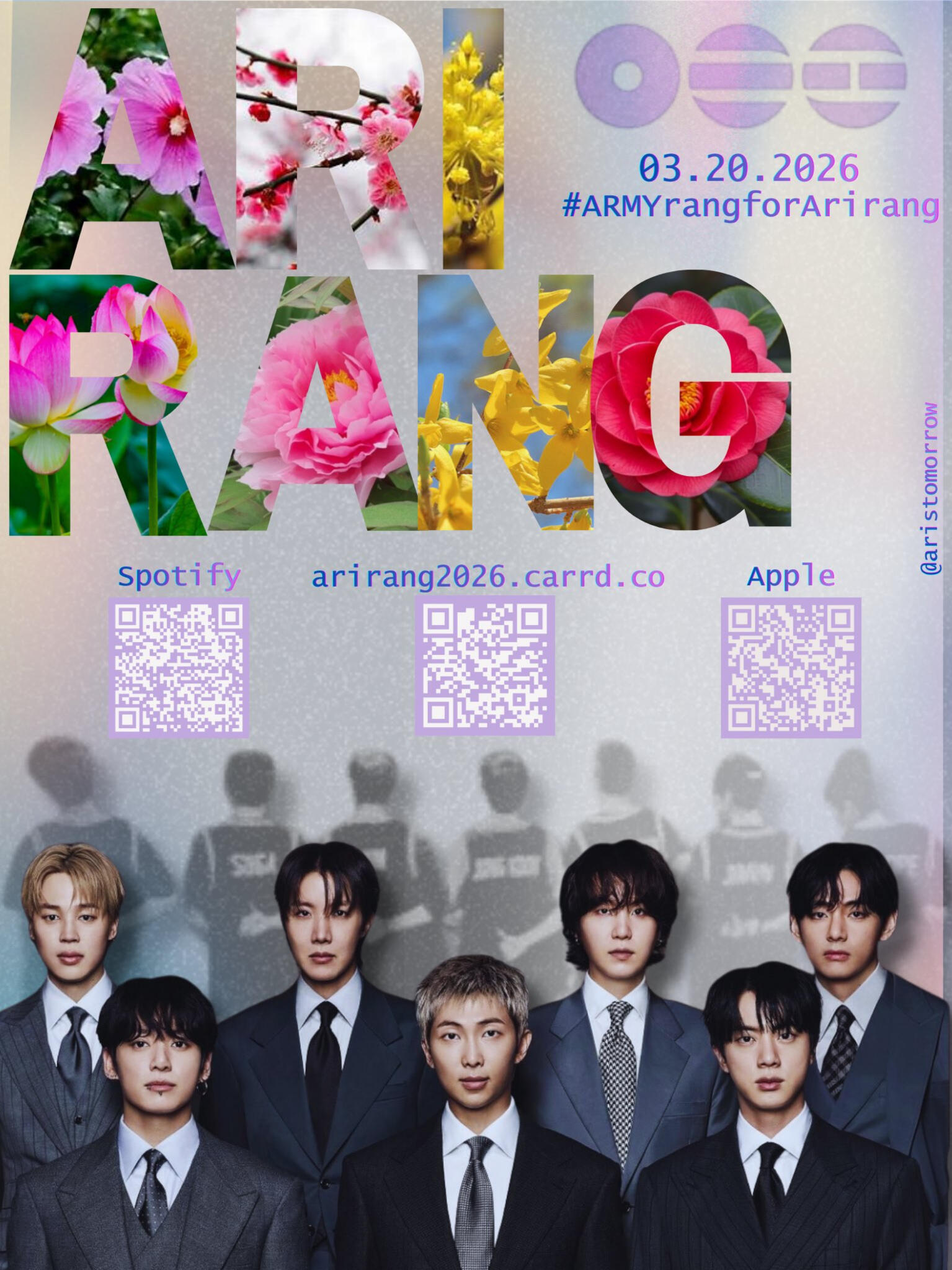 You helped trend #BTSComeback2026 or ARIRANG OUT TODAY/ AOTY OUT TODAY in 7 minutes.You are part of the purple ocean even on social media.