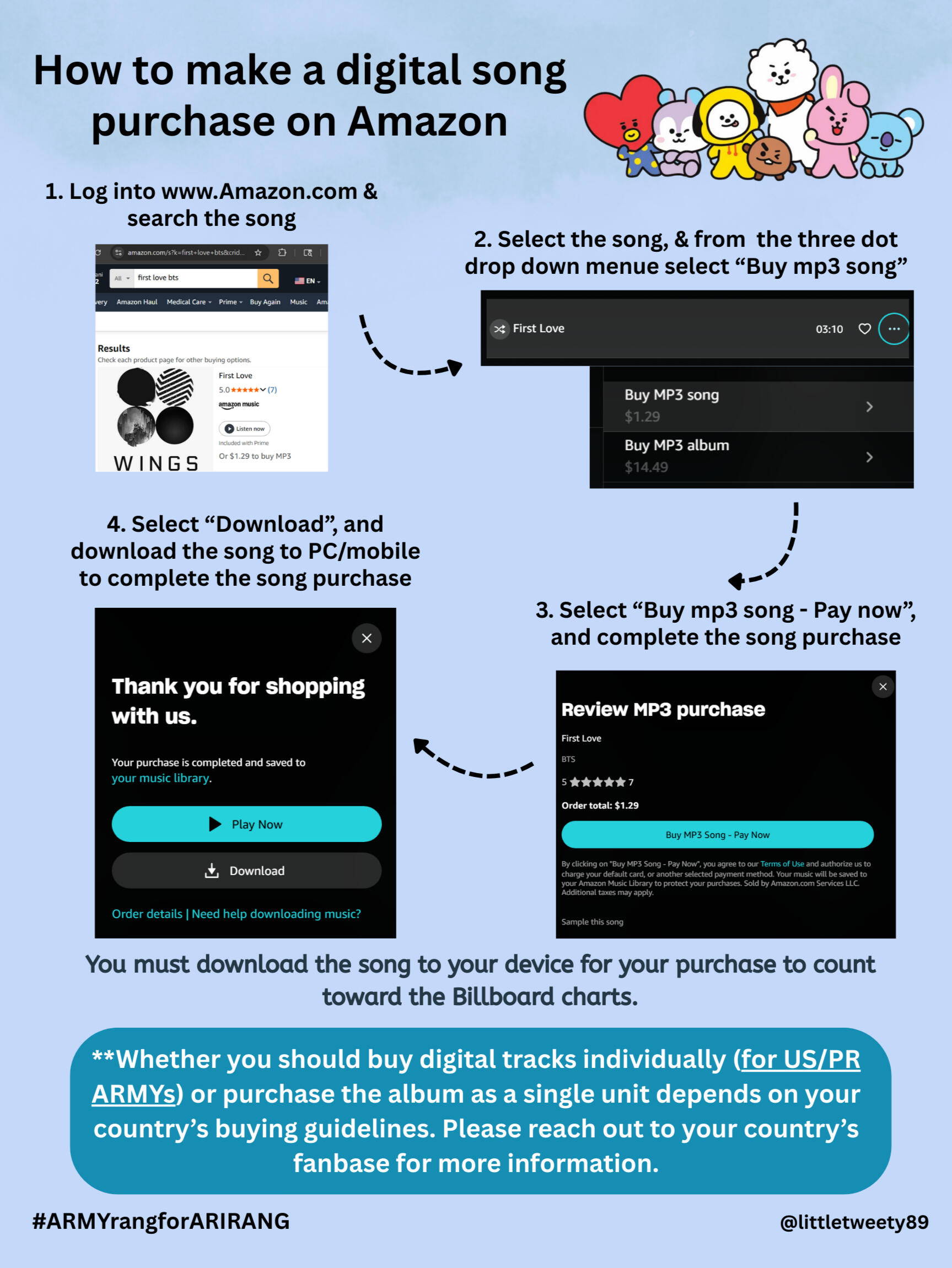 For US ARMYs**Only purchases made with a valid U.S. address are eligible for the Billboard Hot 100. Limit one each per customer. Multiple copies will not count toward the Billboard Hot 100.