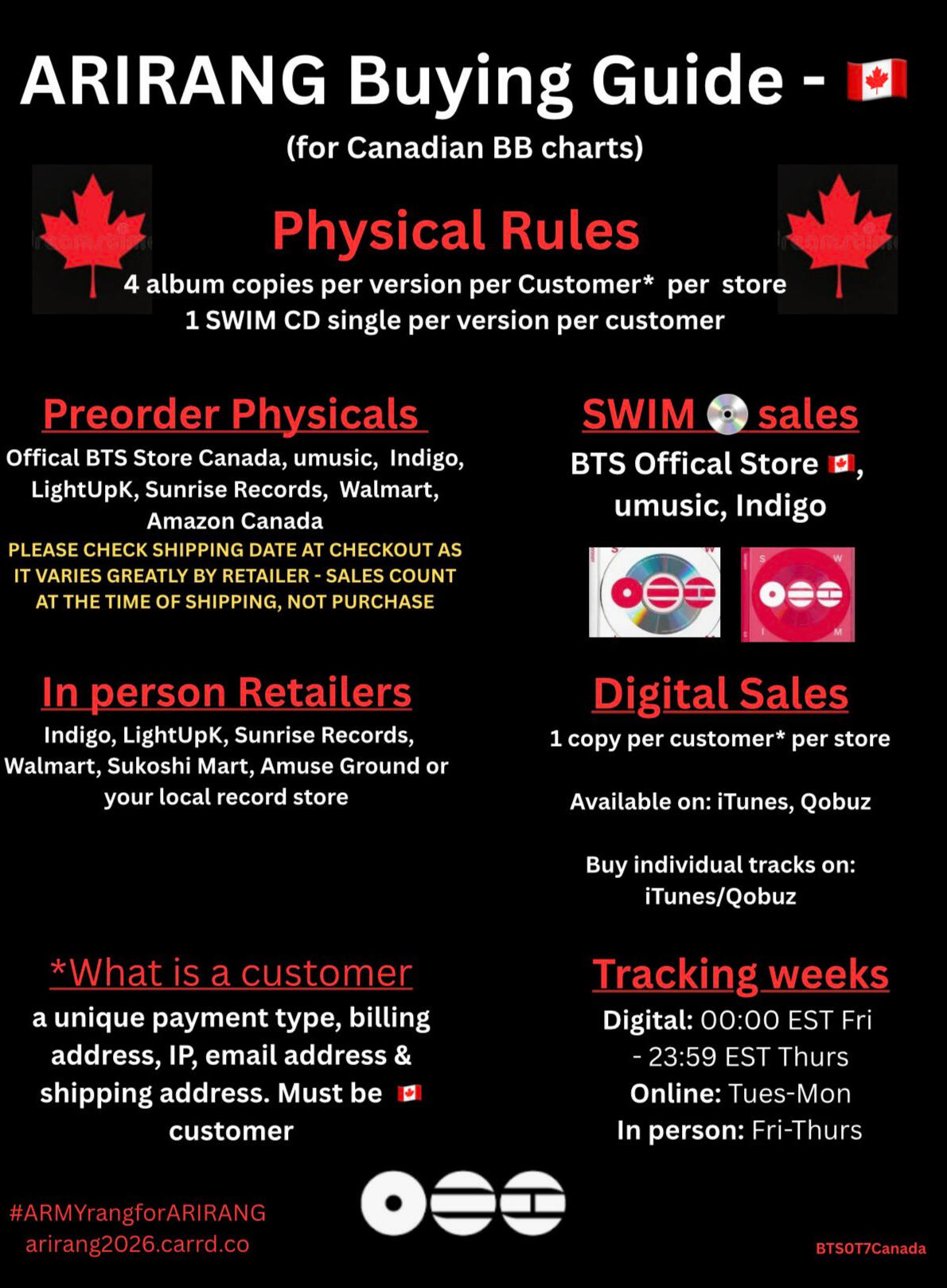For CA ARMYsCanadian ARMYs can purchase the CDs using the following links. Limited to 1 each per customer with a valid CA address**to contribute towards Billboard charting, please make sure to select the split shipping option at checkout if you have multiple items in your cart with different street dates.